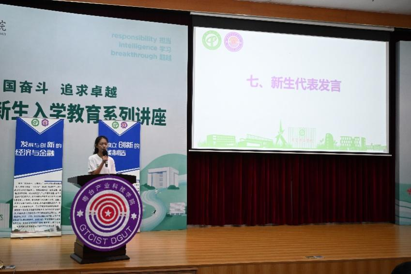 这个不一样的平台,实现不一样的精彩。校友代表,校友会会长陈金晖为新生送上祝福,祝愿新同学在大学生活中锚定目标,实现理想。新生代表武俊尧表达了对未来的期待。她表示,来到莞工,来到EMC
