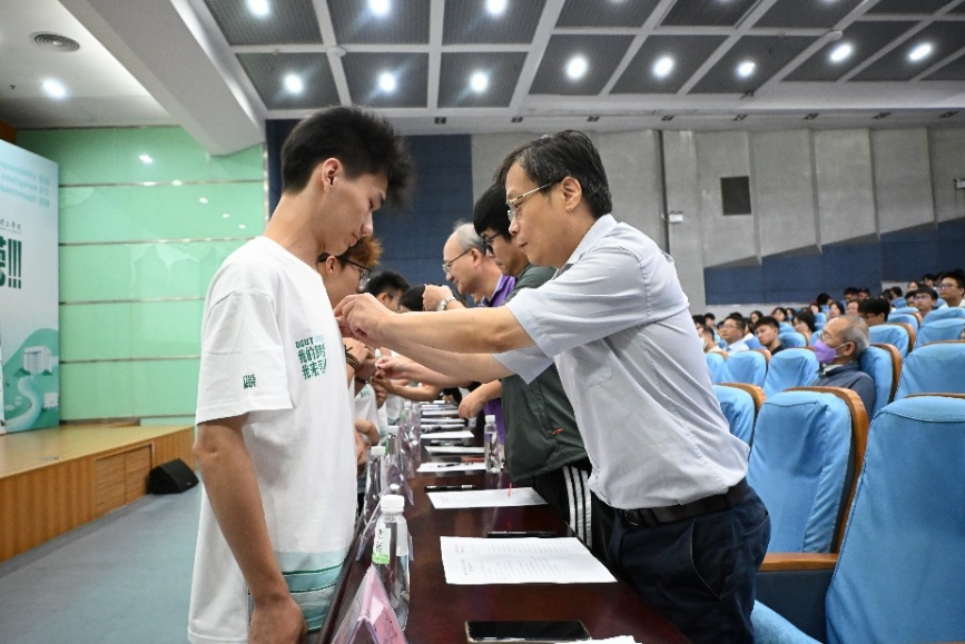 学院领导和系主任为新生佩戴院徽